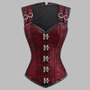 Corset Steampunk à Double Bretelles Jacquard Bordeaux Métal