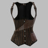 Corset Steampunk Gothique à Rayures Marron et Noir avec Inserts en Cuir
