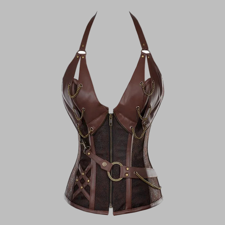 Corset Steampunk Marron avec Chaînes et Sangles en Cuir