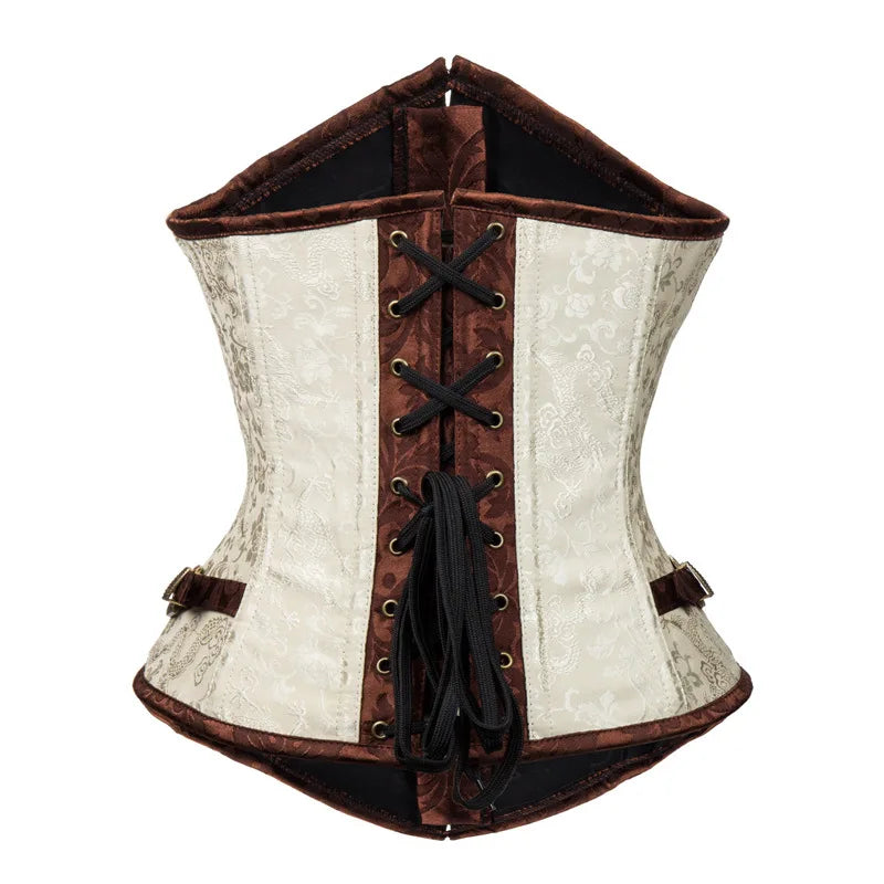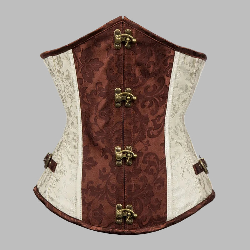 Corset steampunk rétro brun et crème avec boucles métalliques