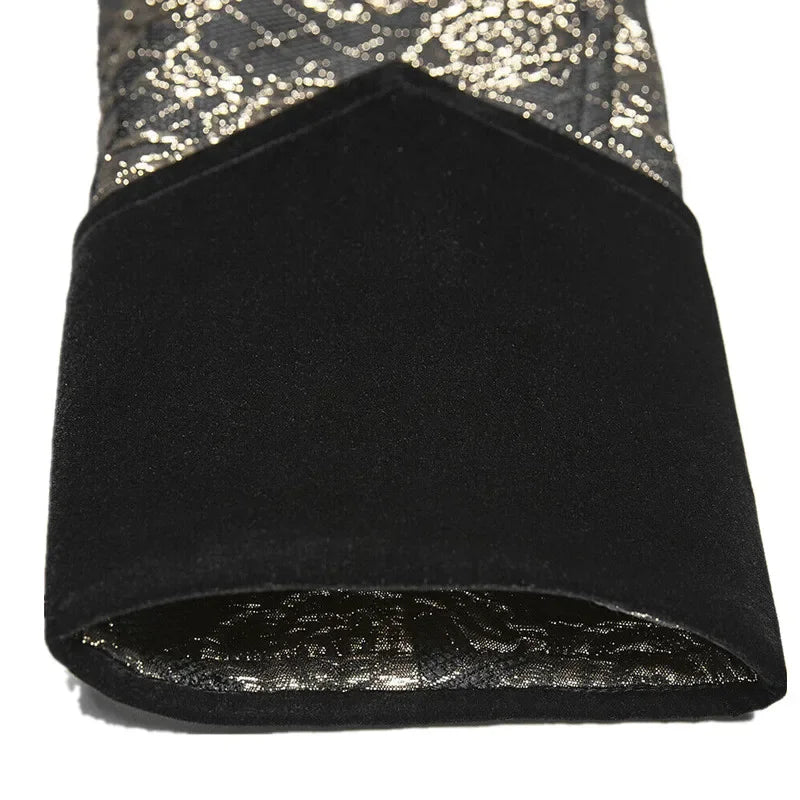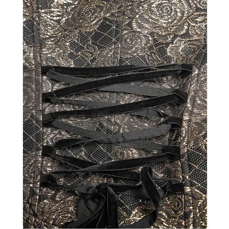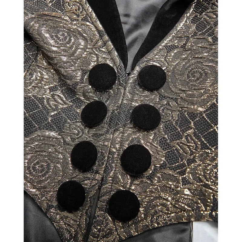 Costume steampunk doré avec queue-de-pie et ornements noirs
