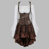 Ensemble Steampunk Robe Corset Rayé Marron avec Jupe en Dentelle