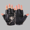 Gants Punk en Cuir Sans Doigts avec Clous Chaîne Crâne
