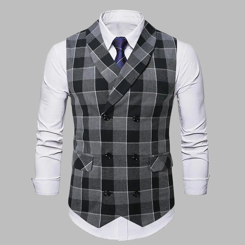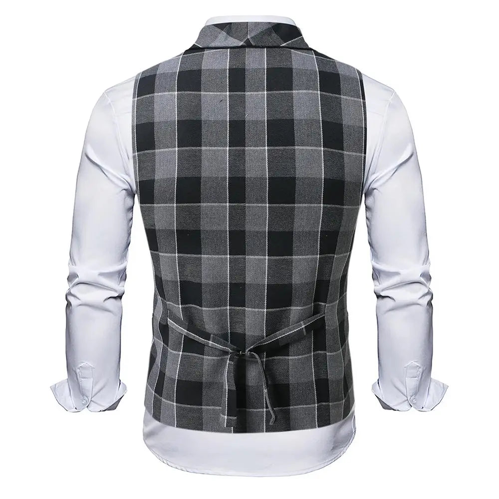 Gilet Punk Classique à Carreaux Gris Style Métal