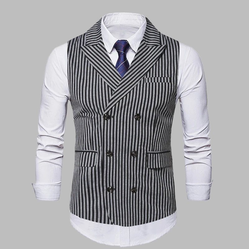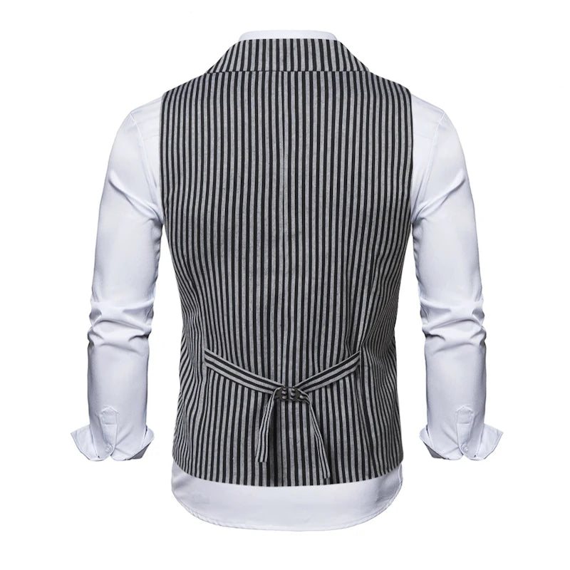 Gilet Steampunk à Rayures Verticales Noir et Blanc à Double Boutonnage