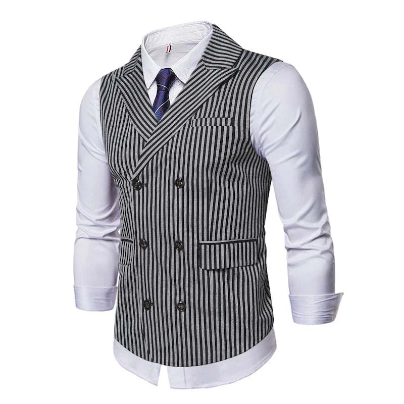 Gilet Steampunk à Rayures Verticales Noir et Blanc à Double Boutonnage Voir les options