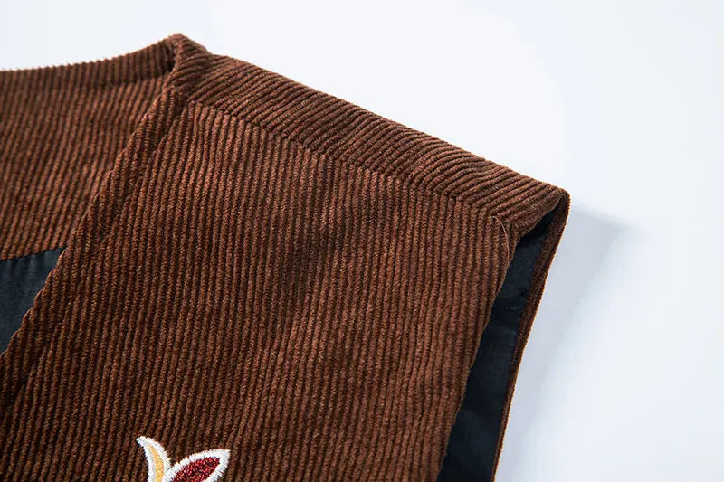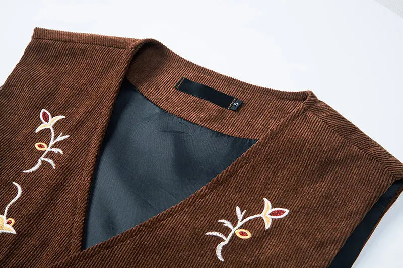 Gilet Steampunk Brodé de Fleurs Marron pour Homme