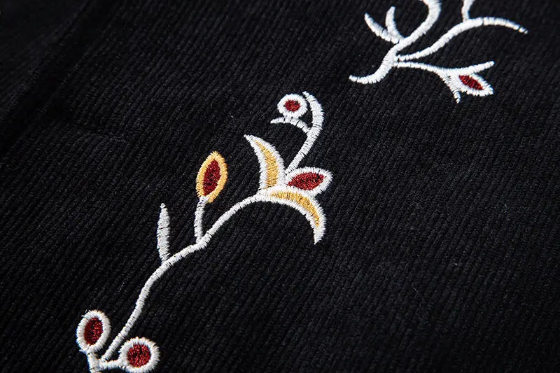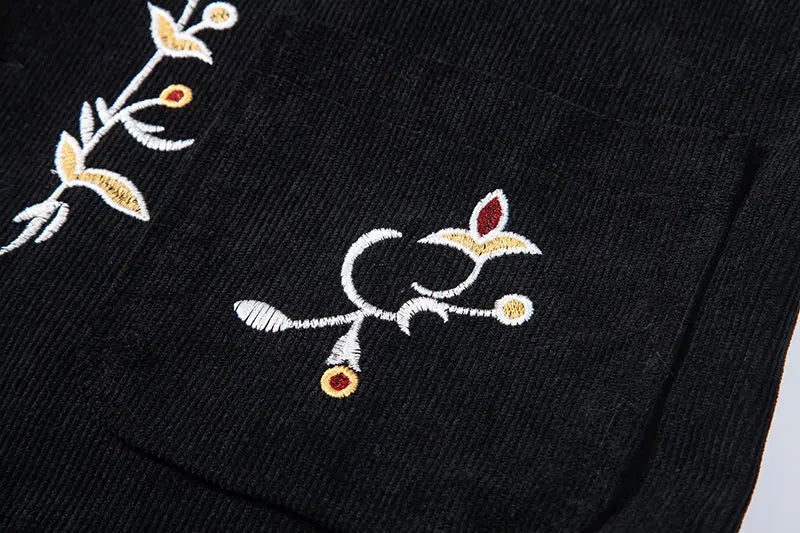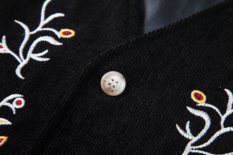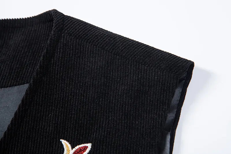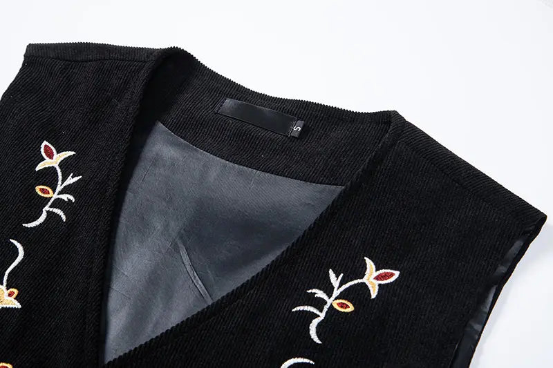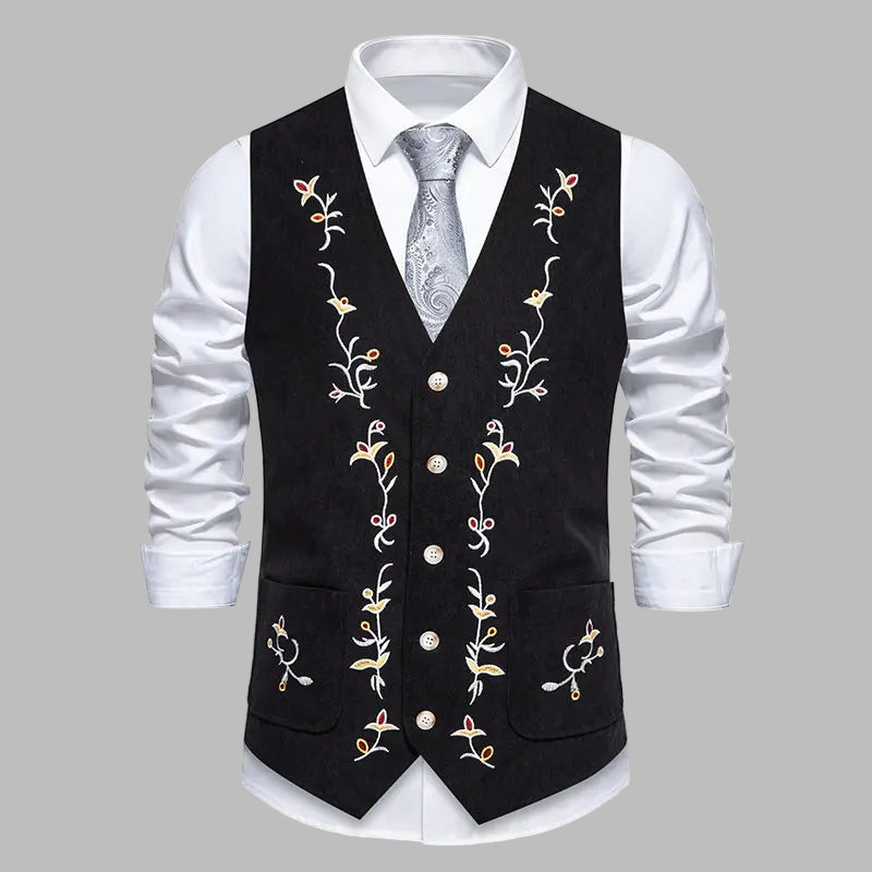 Gilet Steampunk Noir Brodé de Fleurs pour Homme