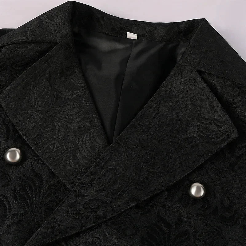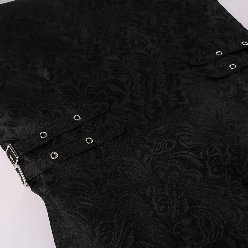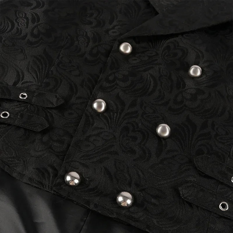 Gilet Noir Steampunk à Motif Brocart et Plis
