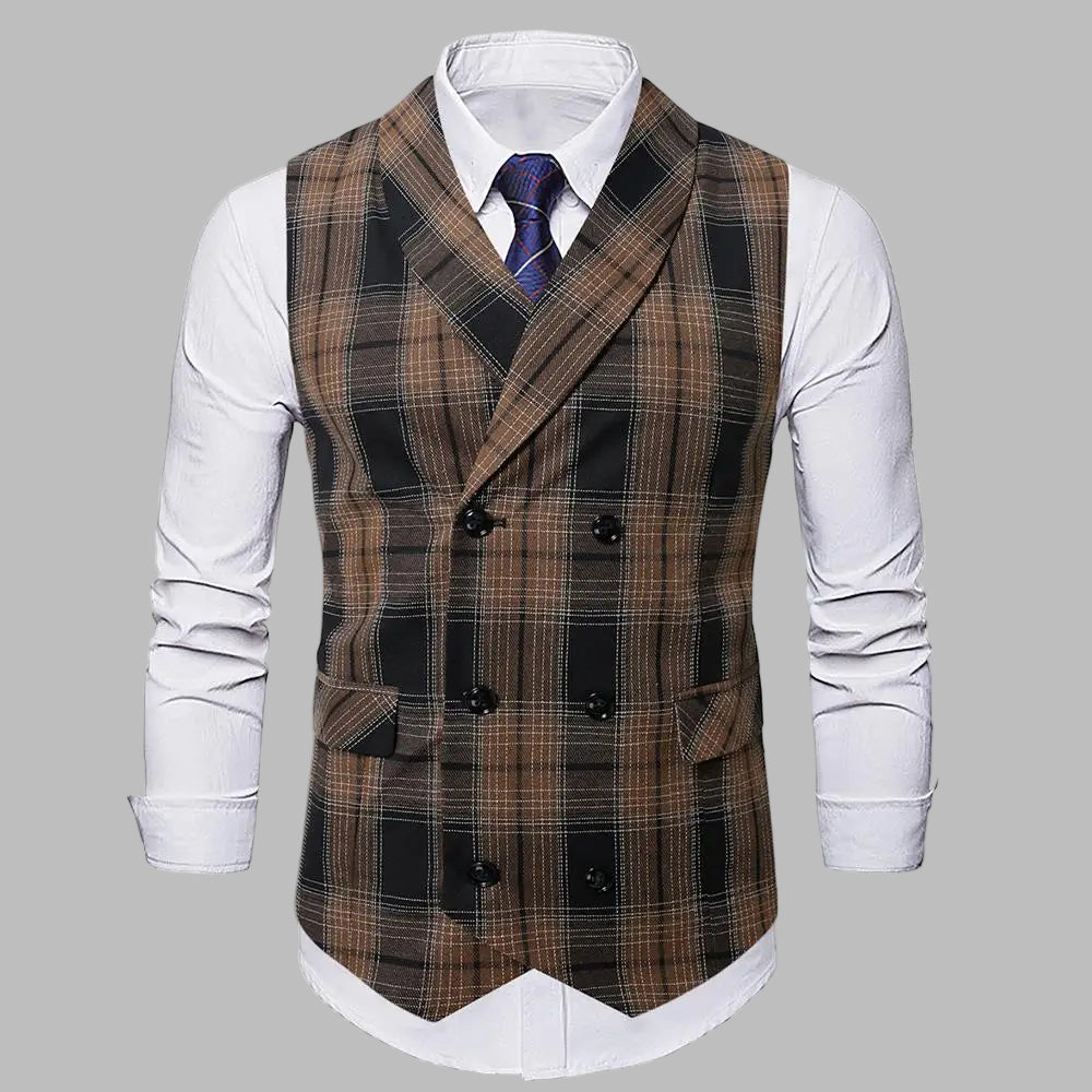 Gilet Vintage Steampunk à Carreaux Marron Élégant Rock