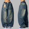 Jean Baggy Grunge Rock avec Ceinture Bleu