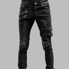 Jean gothique rock noir pour homme avec fermetures éclair et boucles, effet destroyed