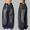 Pantalon en Jean Gris Métal avec Chaînes Style Baggy Grunge