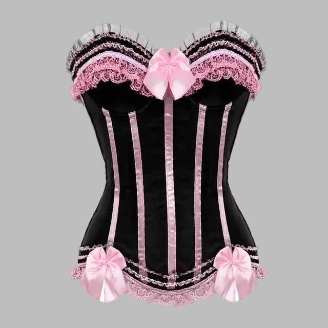 Jirai Kei Corset Noir et Rose avec Nœuds et Dentelle