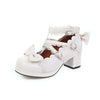 Jirai Kei Mary Jane blanches à talons avec dentelle et nœud