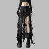 Jupe asymétrique noire gothique punk avec dentelle et franges