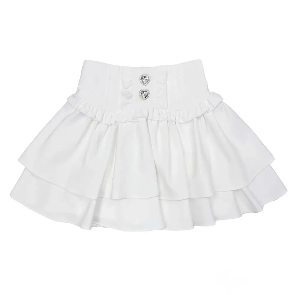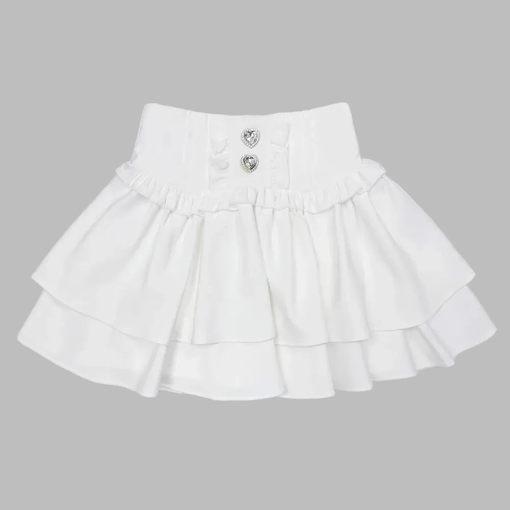 Jupe Blanche Jirai Kei à Volants et Boutons en Forme de Cœur