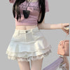 Jupe Blanche Jirai Kei en Jean avec Volant en Dentelle