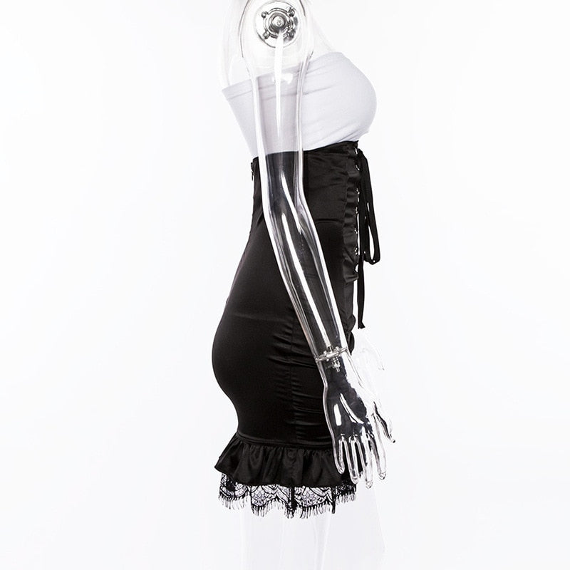 • Jupe courte moulante avec dentelle : plus de romantisme