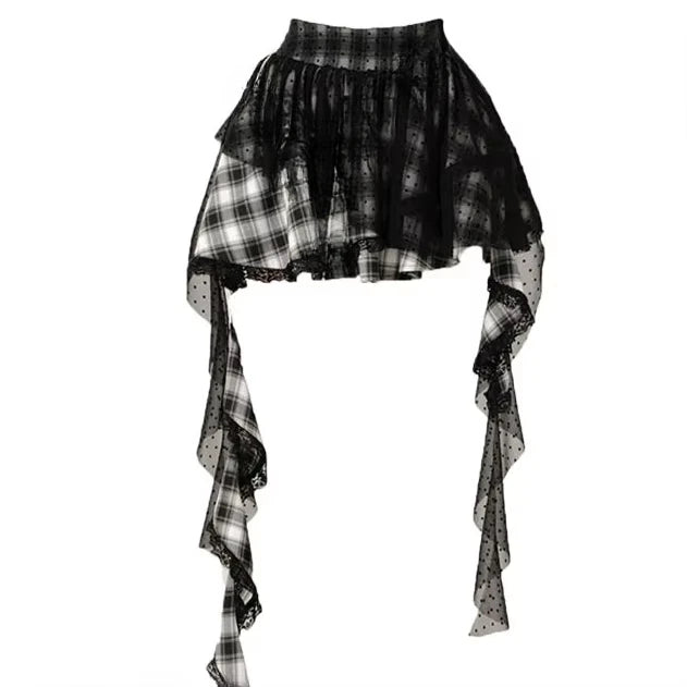 Jupe Punk à Carreaux avec Dentelle et Rubans L
