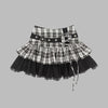 Jupe Steampunk Grunge à Carreaux avec Volant en Dentelle L