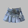 Jupe en Jean Bleue Punk avec Ceinture et Plis