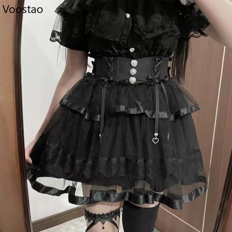 Jupe Lolita Punk Gothique avec Dentelle et Couches de Tulle