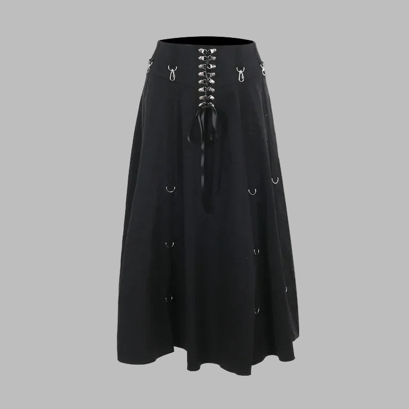 Jupe gothique noire longue asymétrique avec corset et volants 3XL