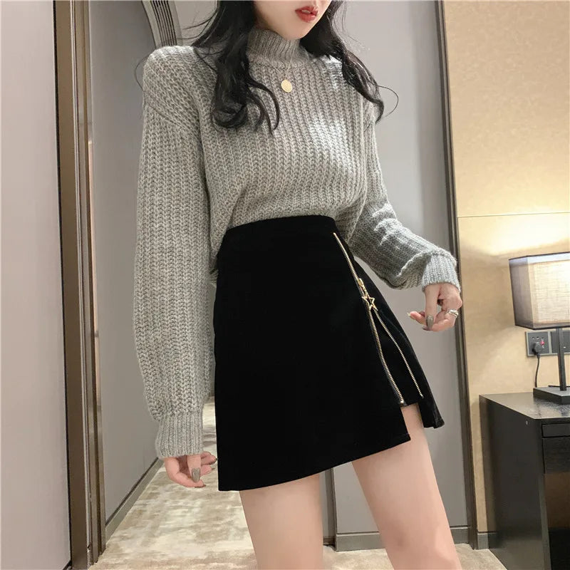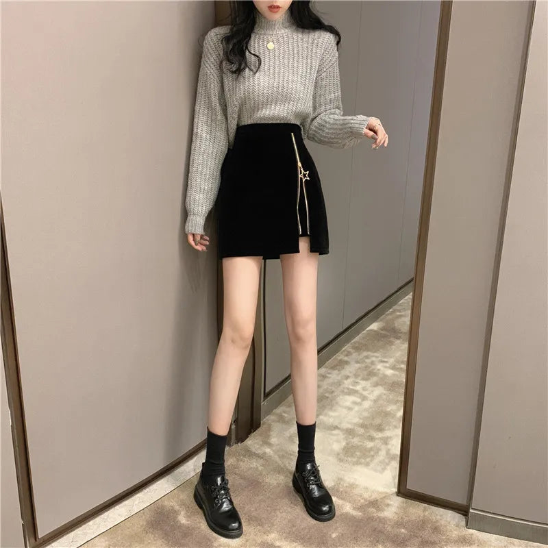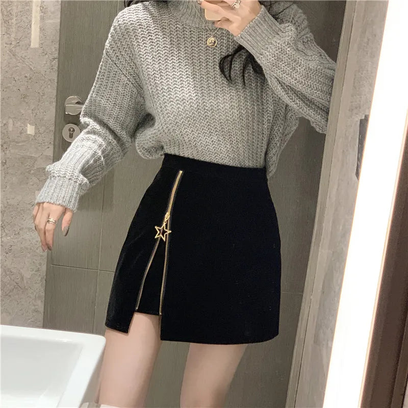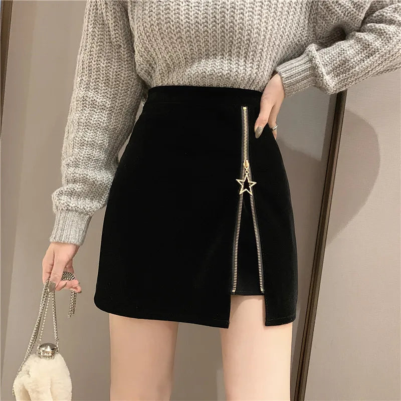 Jupe Punk Gothique Noire avec Fermeture Éclair et Étoile