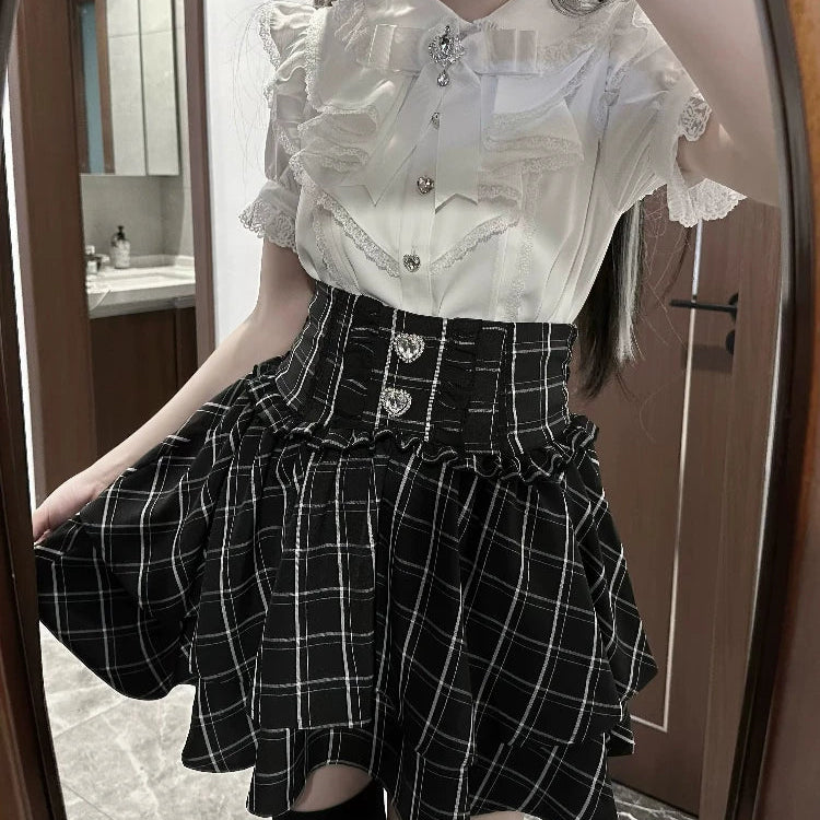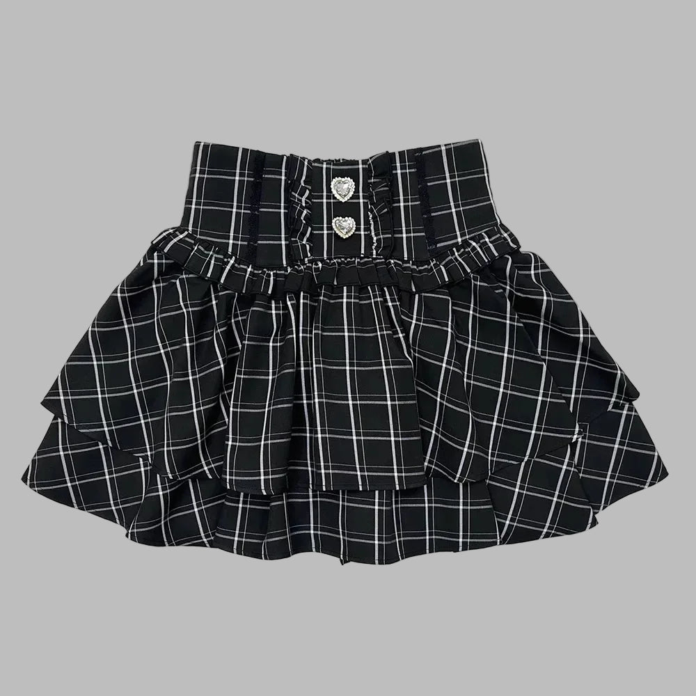 Jupe gothique punk rock à carreaux avec boutons et volants