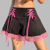 Jupe Grunge Gothique avec Rubans Roses et Dentelle