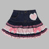 Jupe Jirai Kei bleu marine à carreaux roses avec nœuds