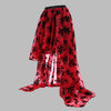 Jupe Longue Asymétrique Rock Rouge à Fleurs Noires 6XL