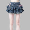 Jupe Mini en Jean à Volants avec Rubans Roses Punk Rock Voir les options
