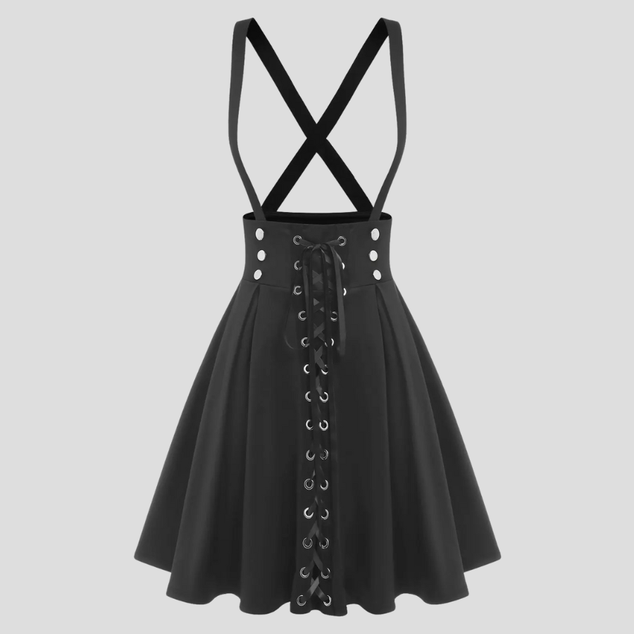 Jupe Noire Métal avec Bretelles et Laçage Corset