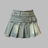Jupe Plissée en Jean Gris avec Bandes Métalliques Punk Rock