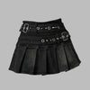 Jupe plissée noire punk avec sangles métalliques et clous L