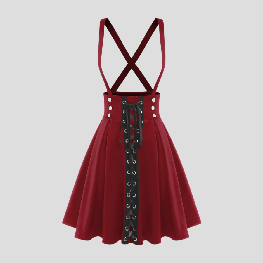 Jupe Rouge Jirai Kei avec Bretelles et Laçage Corset