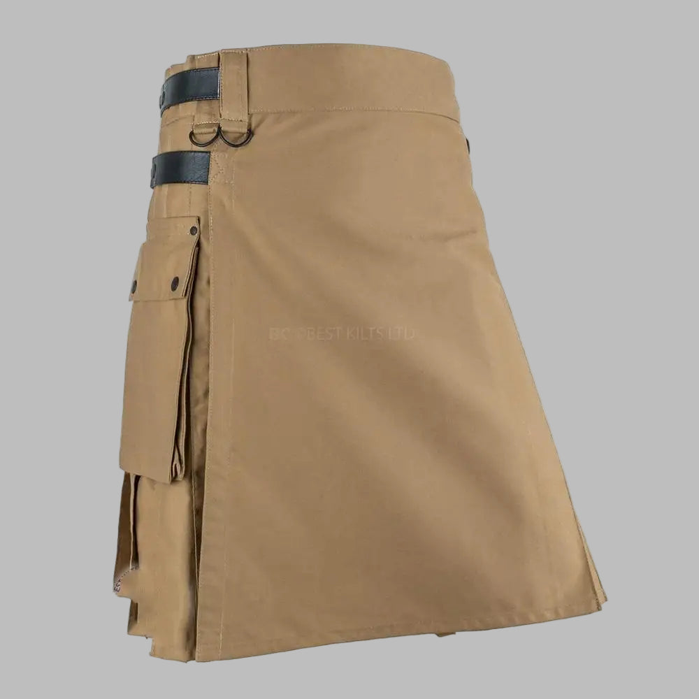 Kilt Steampunk beige avec sangles et boucles en cuir Voir les options