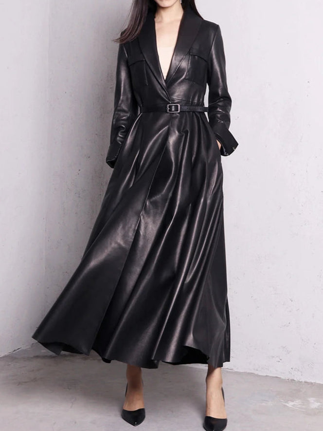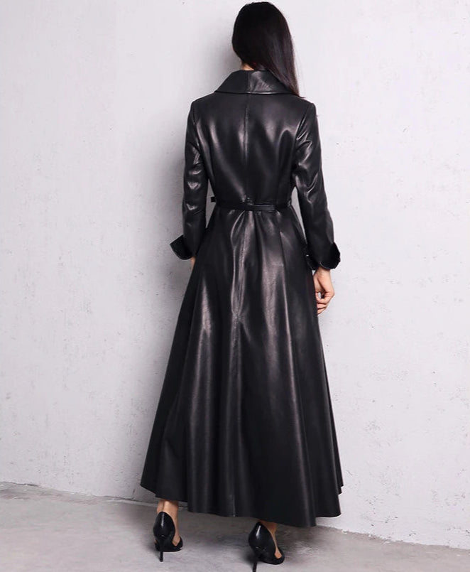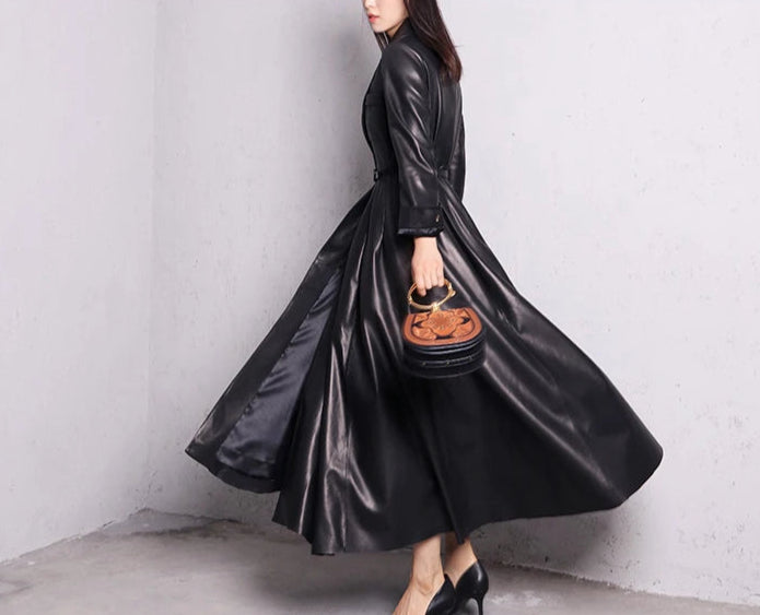 Long manteau gothique rock en cuir noir élégant