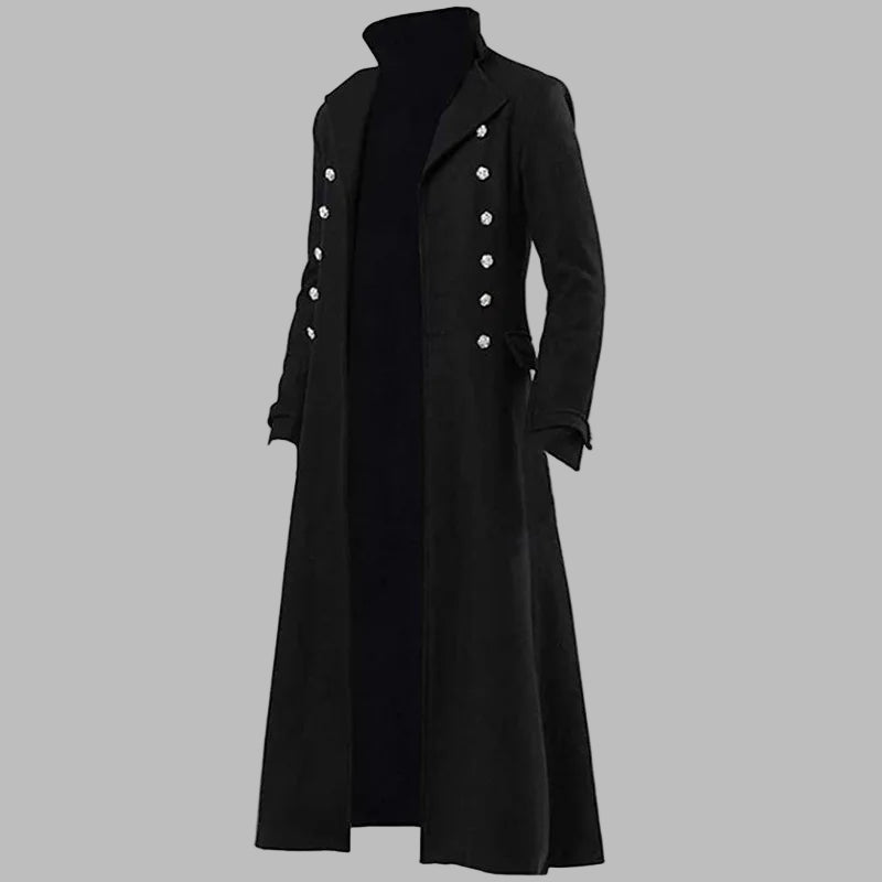 Long manteau noir goth rock avec boutons métalliques élégant Voir les options