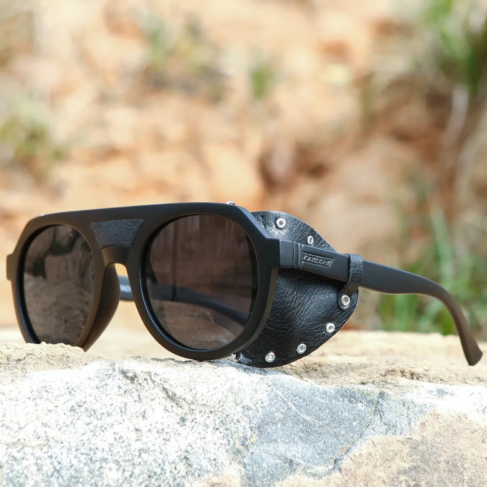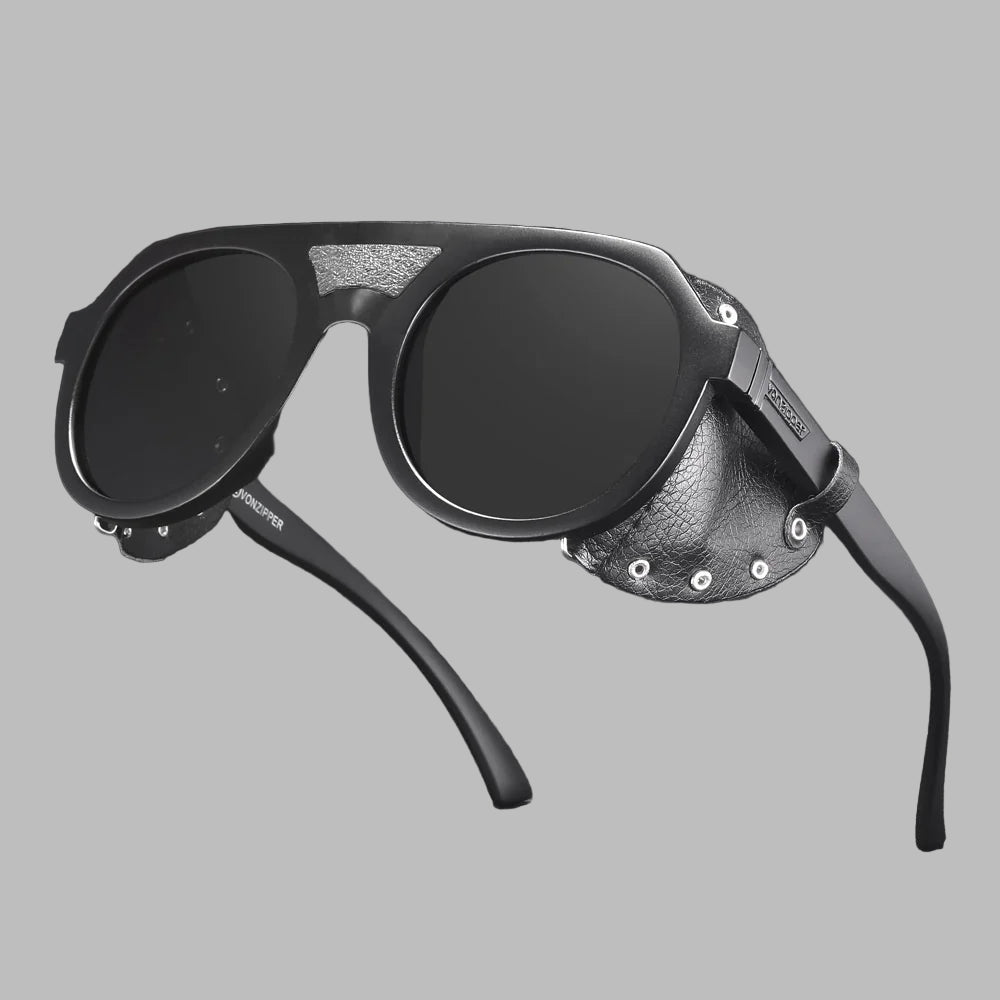 Lunettes de Soleil Punk Rock Noires Mat avec Rivets