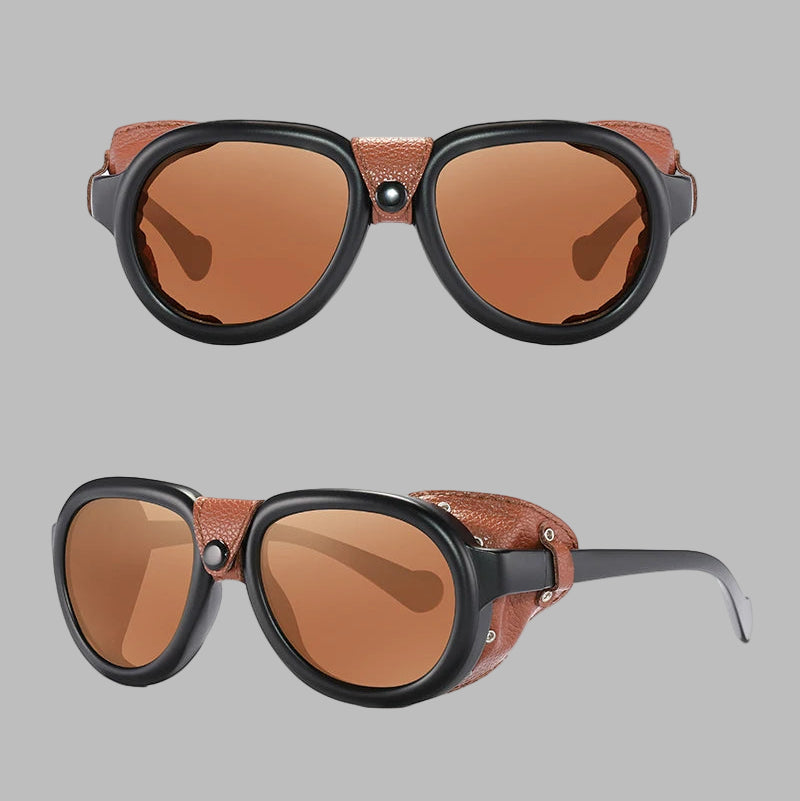 Lunettes Punk Rock Noires Marron avec Protections en Cuir