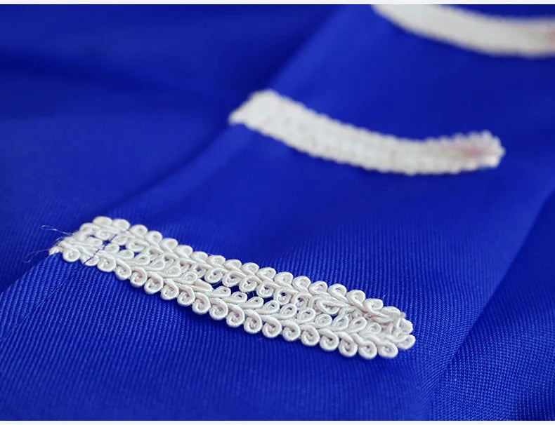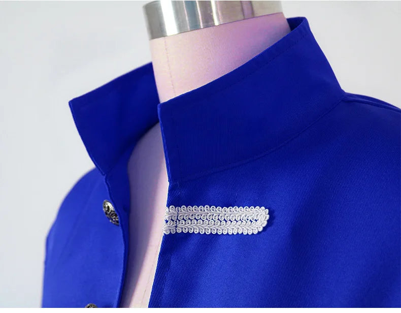 Manteau Steampunk Bleu avec Cordons Décoratifs Blancs Homme 4XL