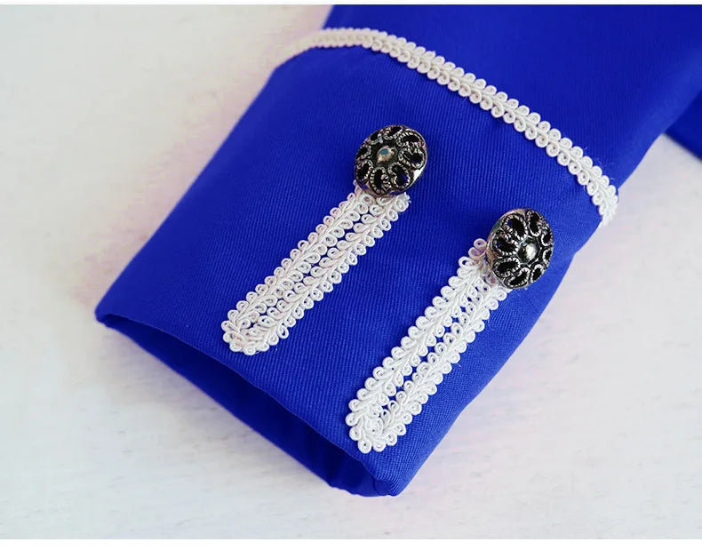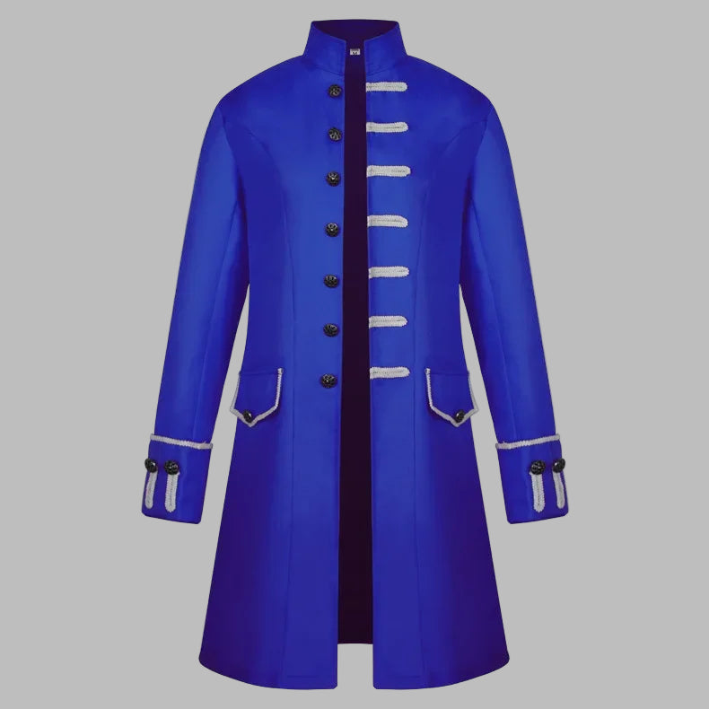 Manteau Steampunk Bleu avec Cordons Décoratifs Blancs pour Homme