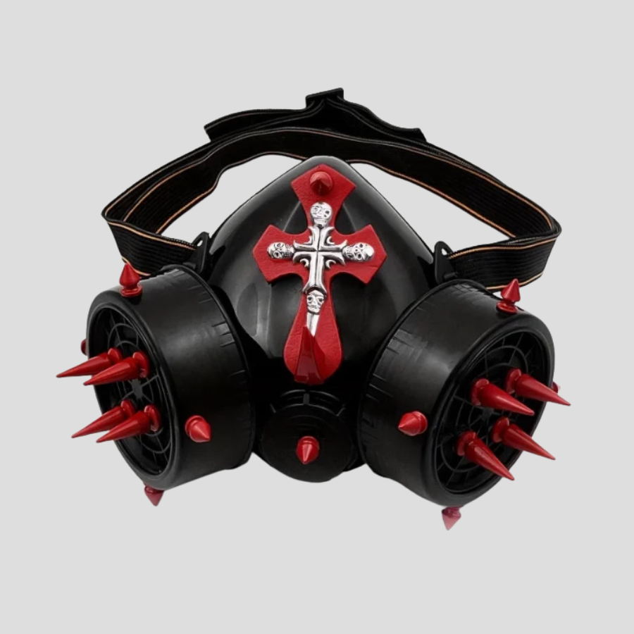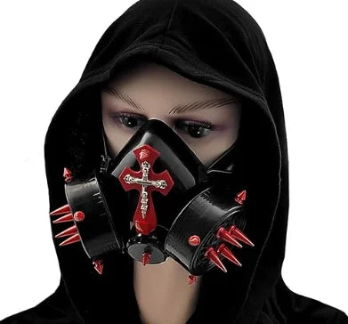Metal Maska z Czerwonym Krzyżem i Ćwiekami Czarna