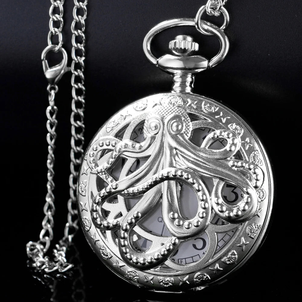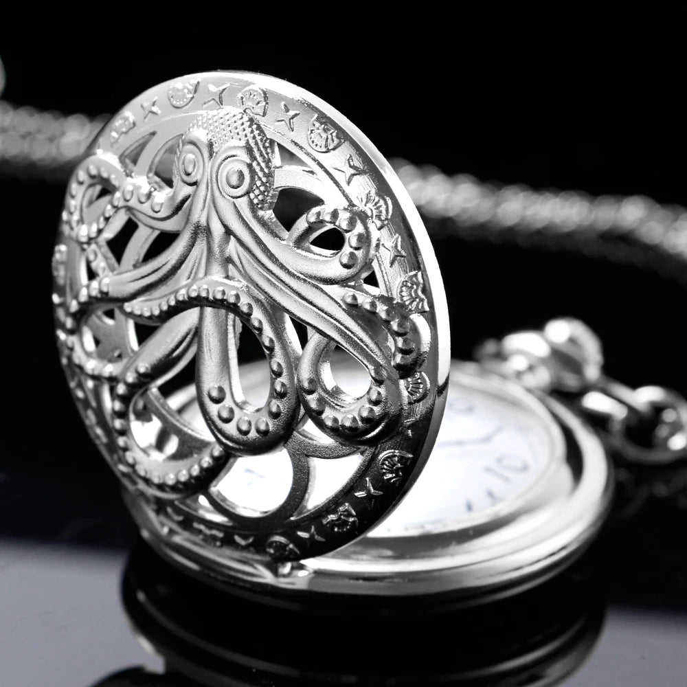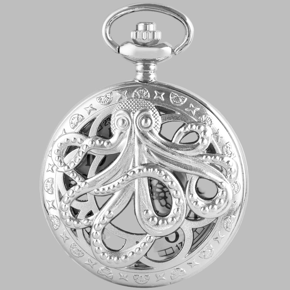 Montre de Poche Steampunk avec Poulpe Argentée Marine