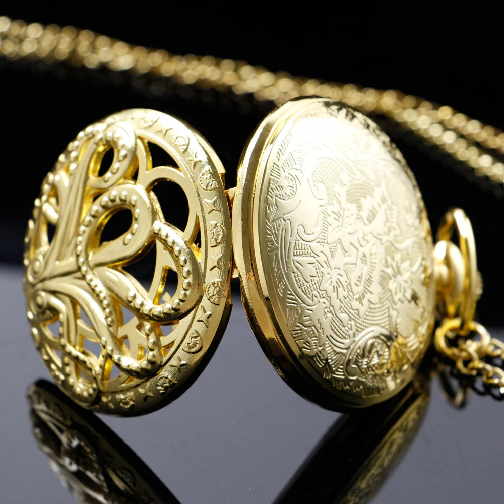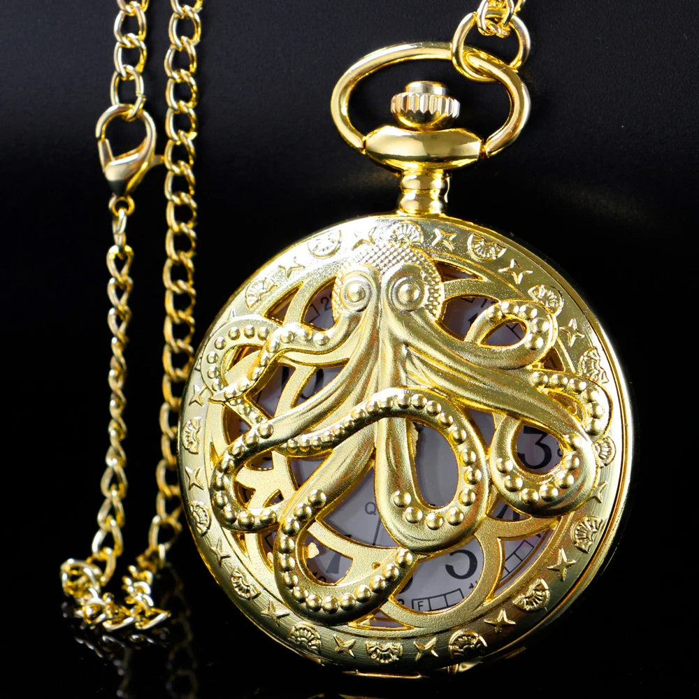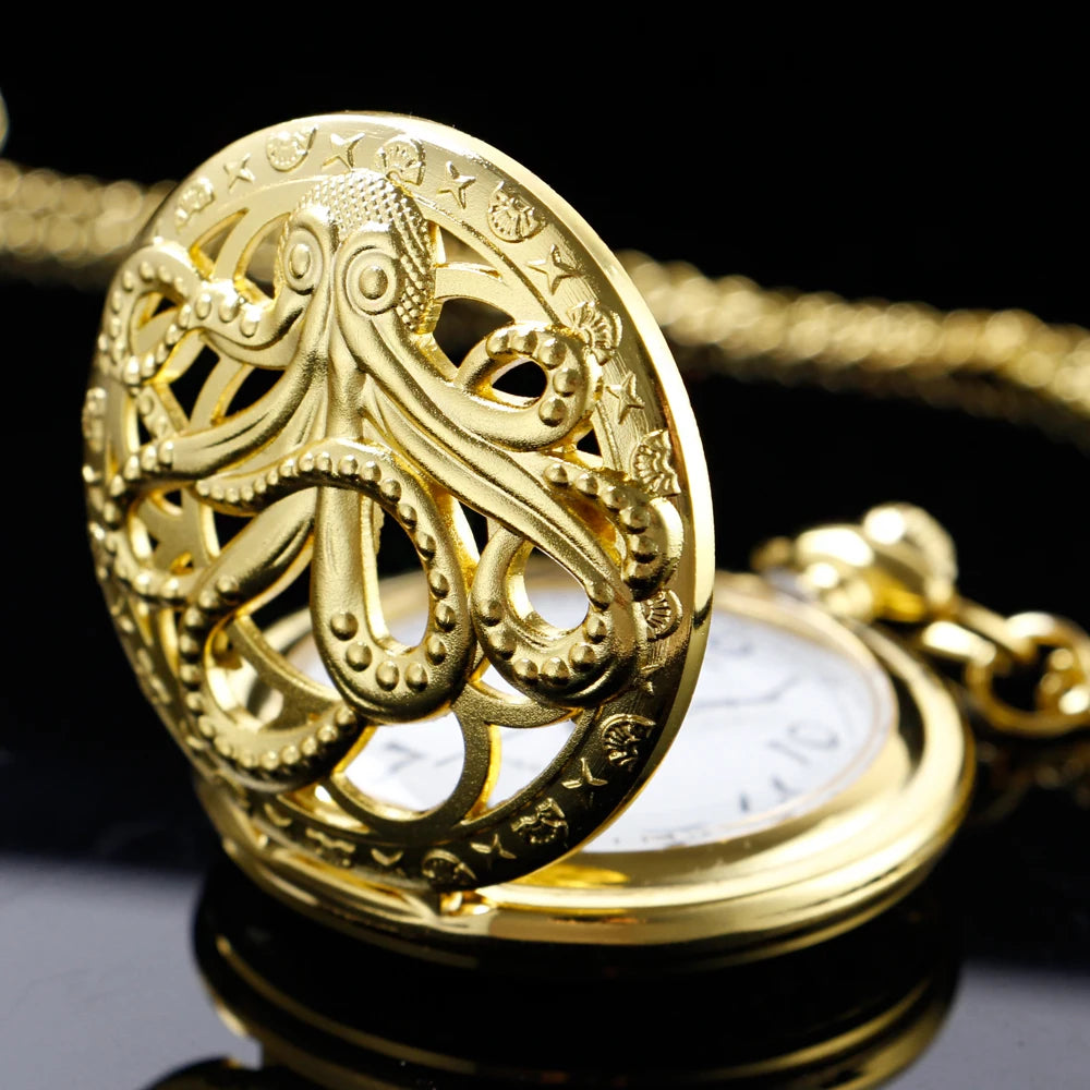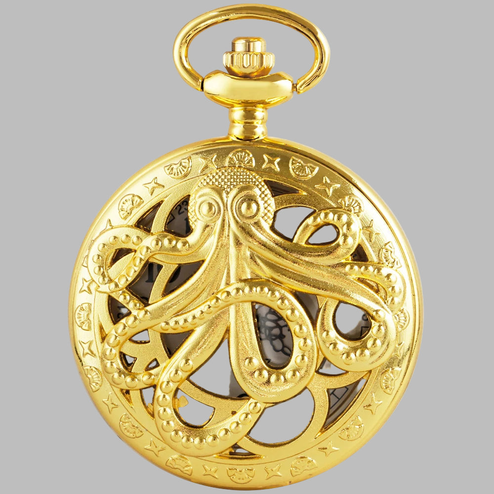Montre de Poche Steampunk avec Poulpe Doré Marin