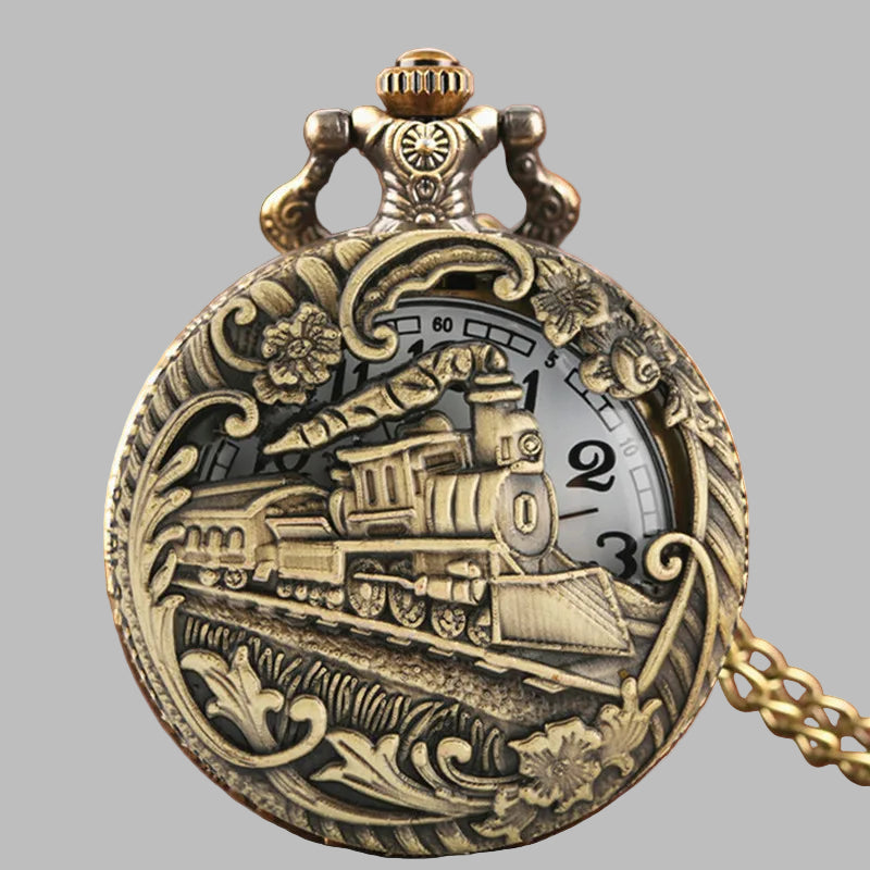 Montre de Poche Steampunk Rétro Locomotive Marron Vintage