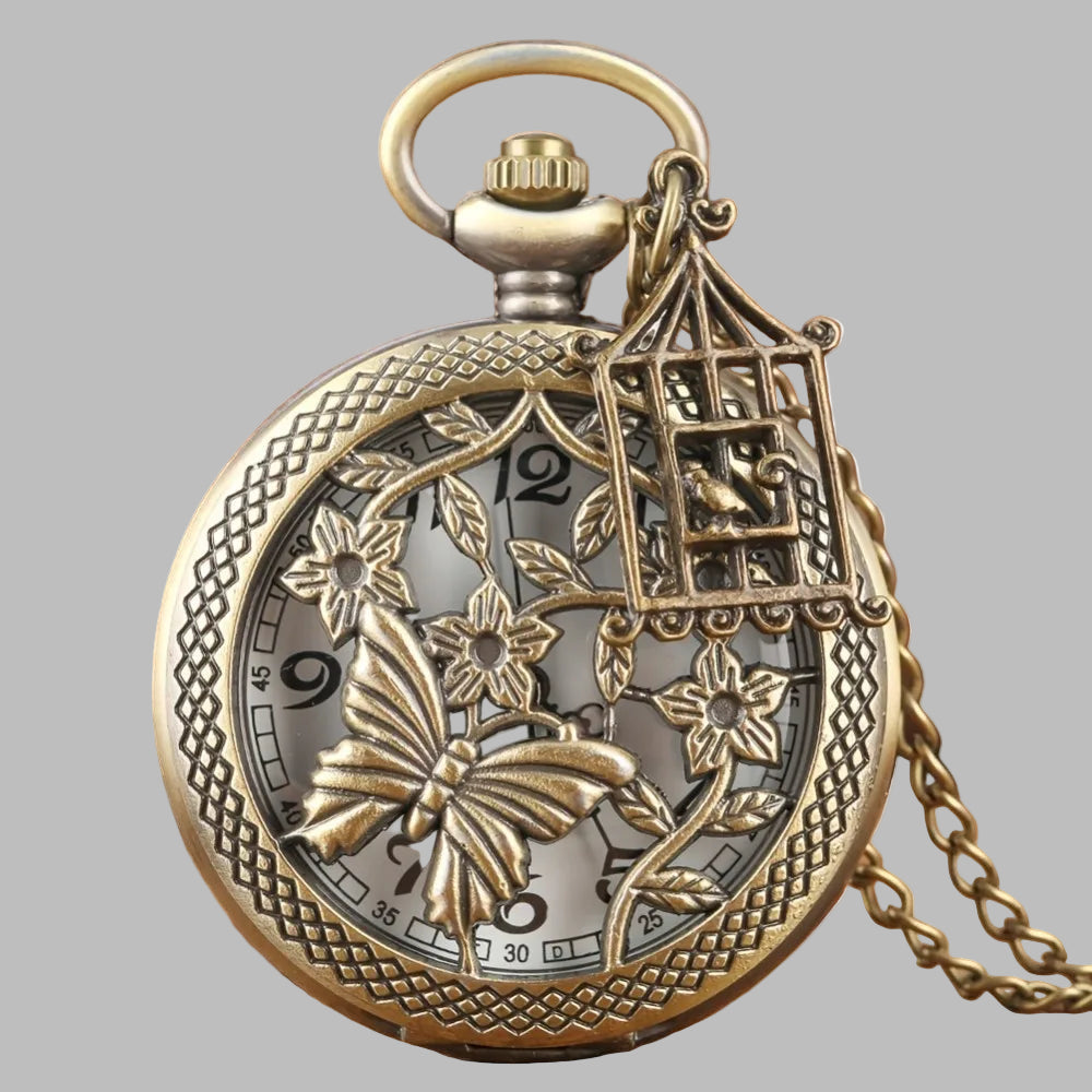 Montre de Poche Steampunk Rétro Papillon et Cage